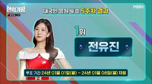 가수 전유진은 현역가왕에 출연해 2회때 "꼬마인형"을 불러 총 30점 만점에 21점을 받았고, 최단시간 만에 조회수 100만 돌파 기록을 세웠습니다.